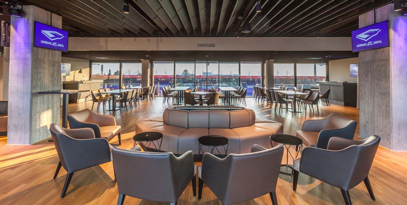 Tischplatz inkl. kulinarische Verpflegung, Tribünenplatz und Parkplatz im Verhältnis 2:1, gilt für: Derby, RB Salzburg, Sturm Graz, LASK – nur nach Verfügbarkeit